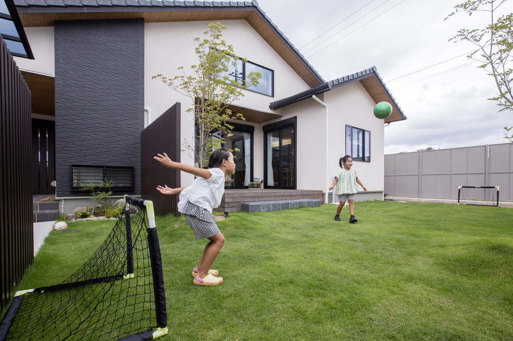 また、自宅の中心に中庭スペースを設けることで、リビングの延長で空とつながることができるだけでなく、プライベートな空間で自由に子ども達を遊ばせたり、のびのびBBQをすることも出来ますよ!