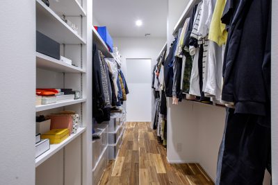 家族の洋服やファッション小物をたっぷり収納できるウォークインクローゼット。