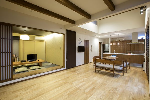 和室をリビングの一部にも独立した客間としても使用可能な設計となってます。