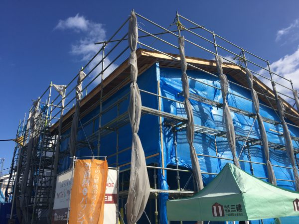 別区画に、三建の新しいモデルハウスが建築工事中です![]()