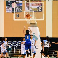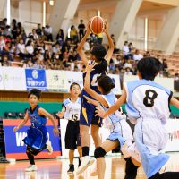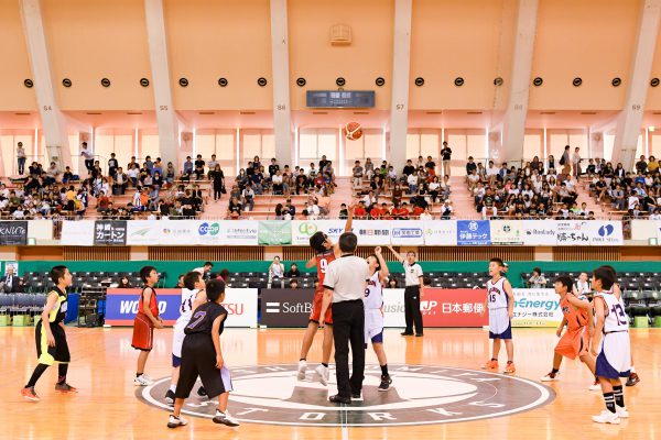 加古川の小学生によるミニバスケットの試合と、三建がスポンサーを勤める