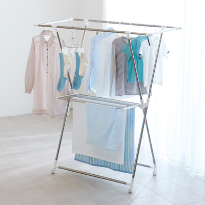 室内干しの時に使う物干しスタンドは、ホームセンターで売っている