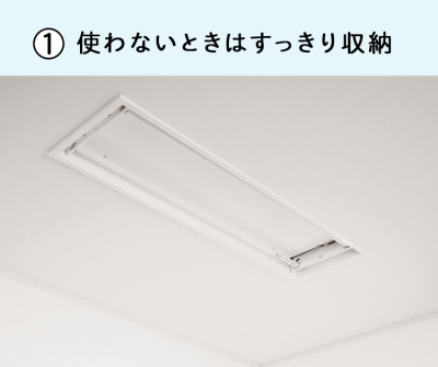 天井付けの物干しユニットだから床置きよりも省スペースなんです。