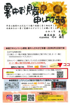◆キャンペーン期限:暑中見舞いハガキがご到着~2020年8月31日まで◆