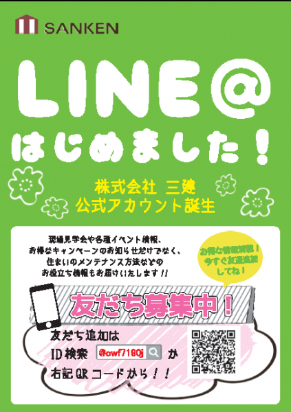 LINE@ではイベントの情報や住まいのメンテナンス・お役立ち情報、