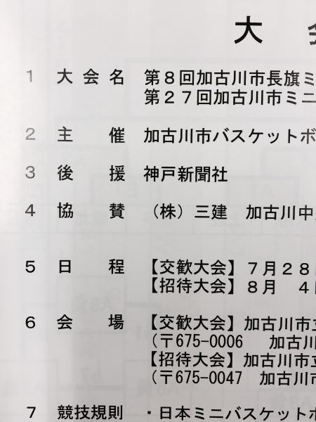 加古川市のミニバスケットボール大会に協賛させて頂きました