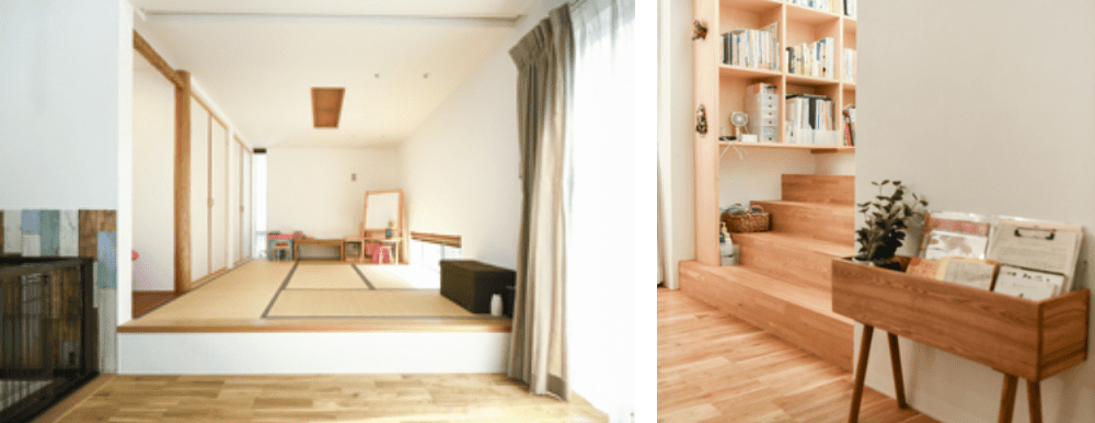 小上がりの畳コーナーにすれば、小上がり部分に収納スペースを作ることができます。生活用品や子供のおもちゃを収納できると便利ですし、リビングもスッキリします。