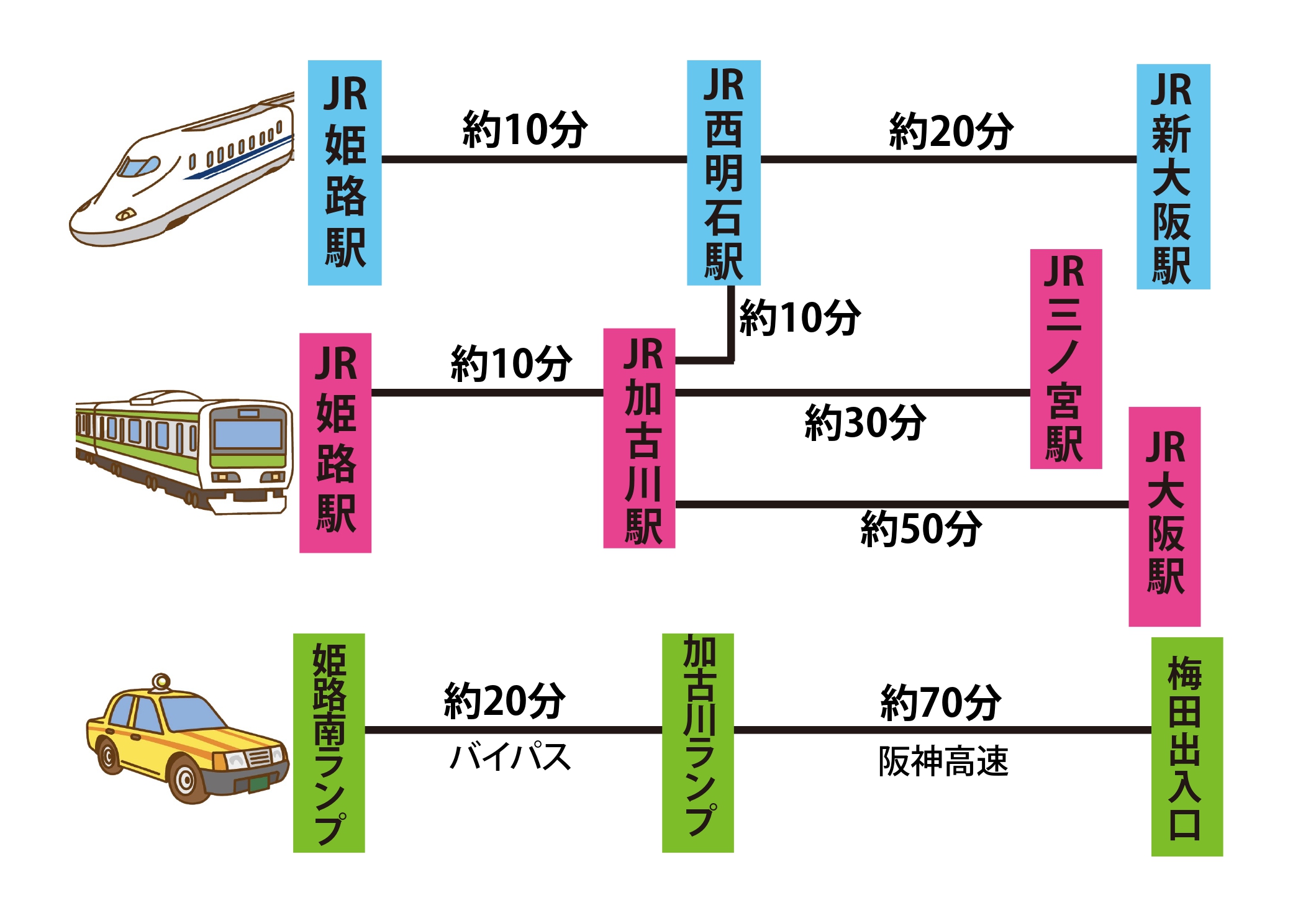 加古川市には「JR山陽本線」「JR加古川線」「山陽電鉄本線」が通り、交通の便に恵まれた街です。