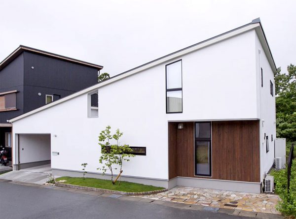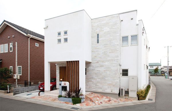 上のお家は白い外壁・塗り壁をベースにしたシンプルな外観。