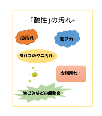 「酸性」の汚れ ⇒ 「アルカリ性」の洗剤