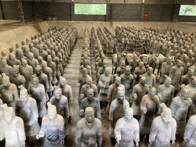 1000体の兵馬俑(古代中国で死者を埋葬する際に副葬された俑のうち、兵士及び馬をかたどったもの)が発掘された現場を再現した兵馬俑展示館があり、足を踏み入れるのが怖いくらいの迫力です。