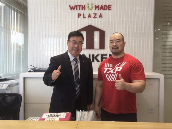 11月24日、三建の本社にパワーリフティング日本チャンピオンの