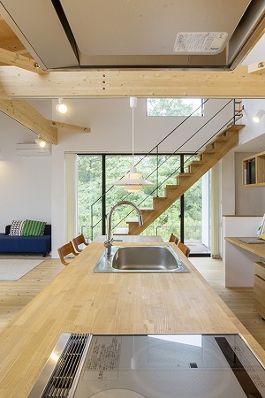 キッチンの中で水を入れて食器等を漬けておく桶や三角コーナー、作業スペースにも何も置かないことで、