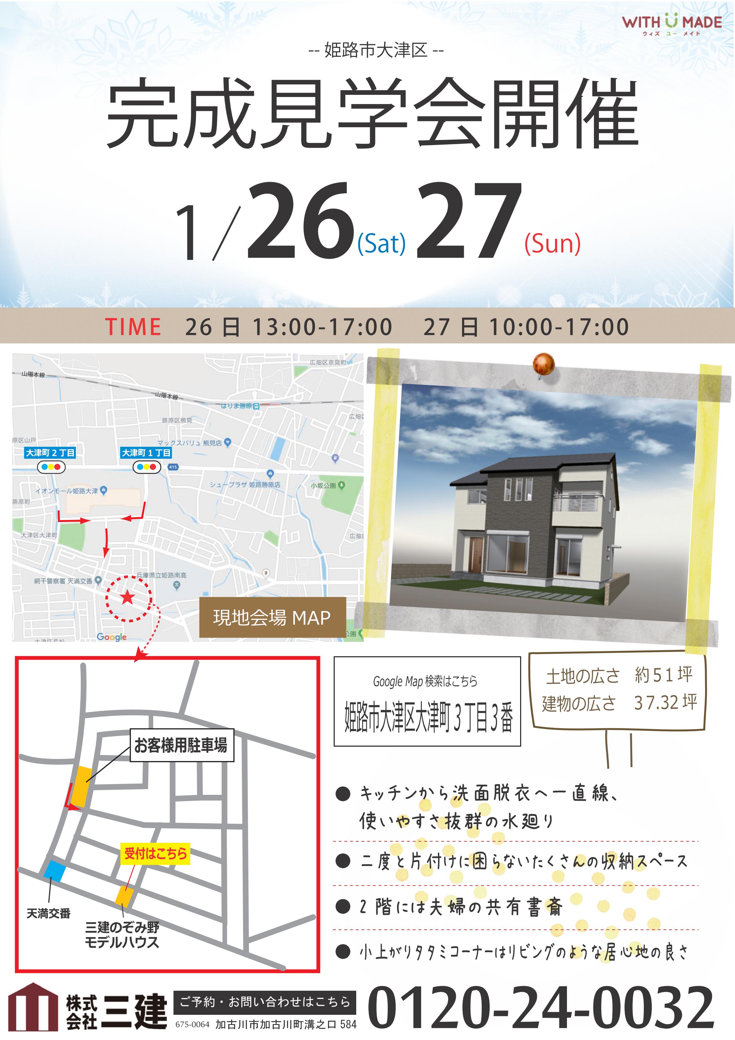1/26-27 新築完成見学会を姫路で開催!