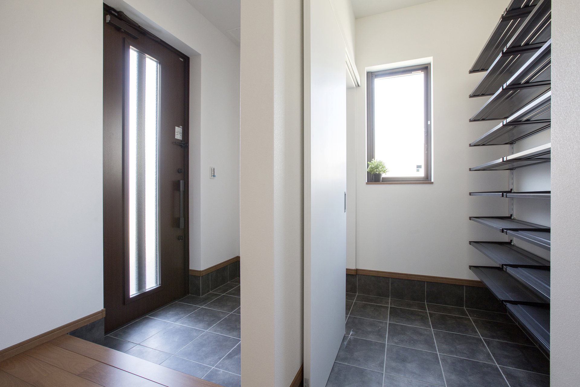 玄関横には大容量のシューズクローク。たくさんの靴はもちろん、ベビーカーや