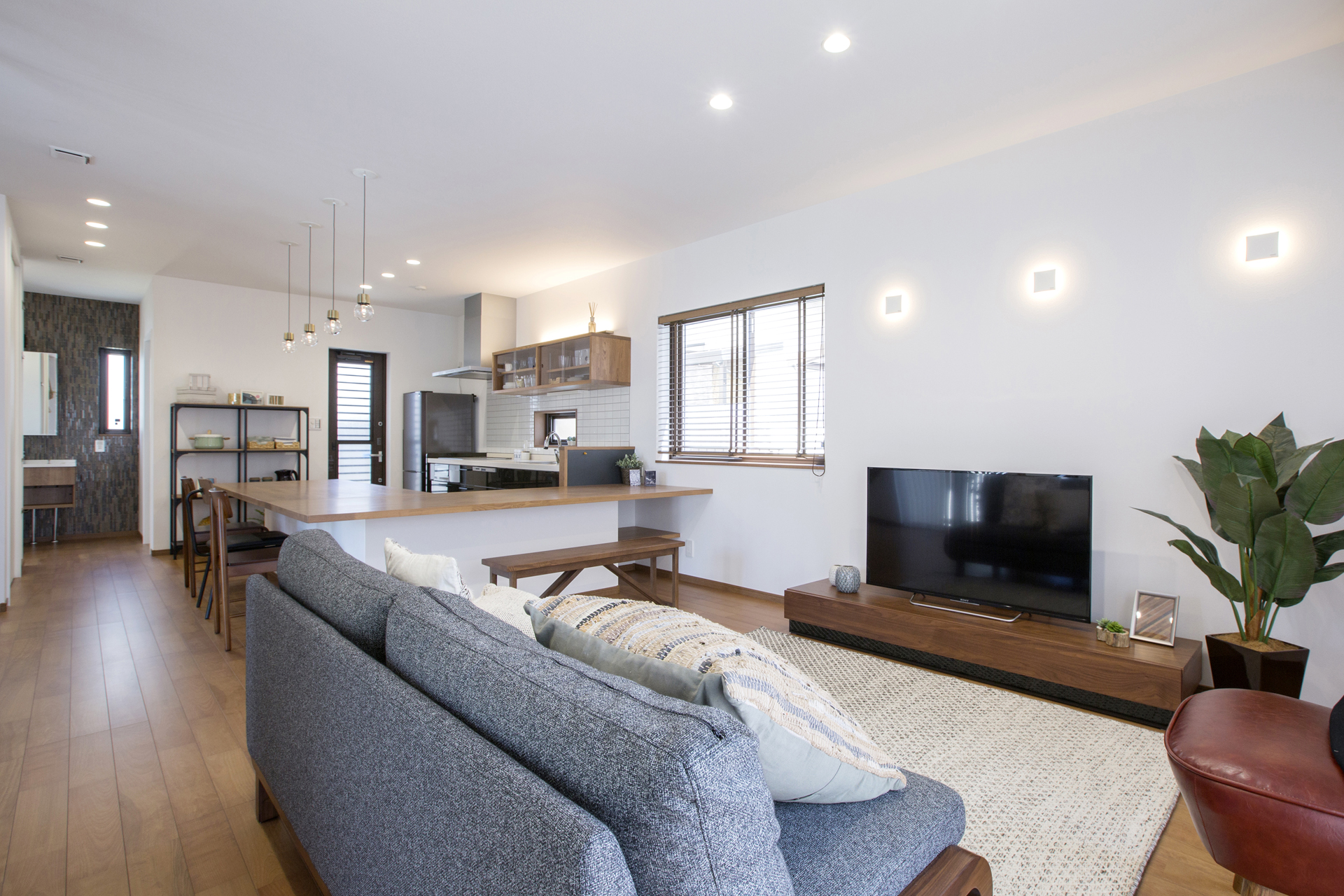 家族の憩いの場となるリビングは落ち着いたデザインの過ごしやすい空間に。