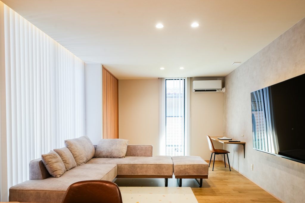 平屋の設計と断熱性能の高さで、家全体に風が抜け、室内は涼しく保たれています。