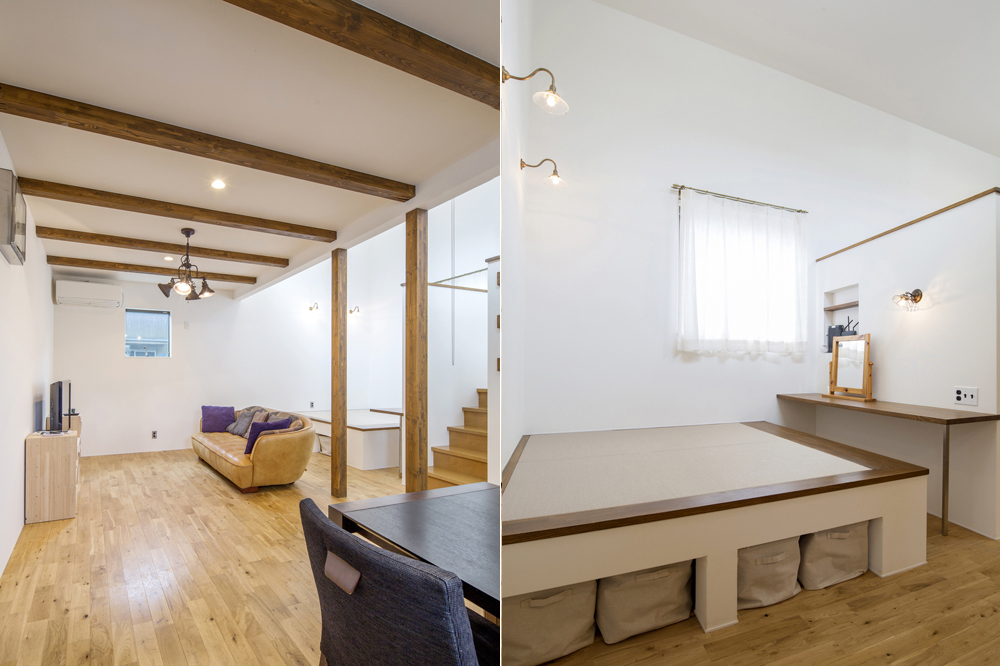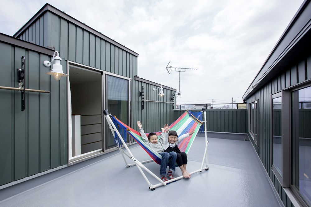 私たちの要望は、家族が集まる広いリビング、物を表に出さない収納スペース、屋上とスキップフロアの奥行きのある空間。