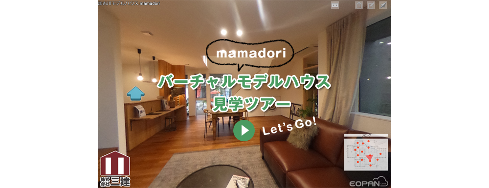 三建のモデルハウス4邸をまるで室内にいるかのような感覚で内覧できるバーチャルモデルハウスツアーを開催しています。