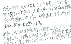 お客様が直筆で書かれた三建との家づくりの声お引渡し後、お客様から直筆のお声が届きました。>>詳細はこちら