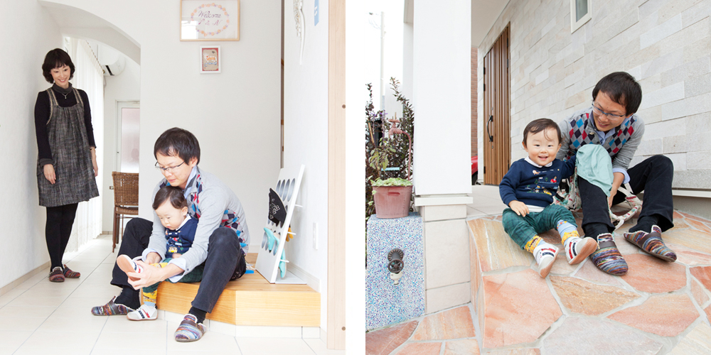 玄関内で子供をベビーカーに乗せて、そのまま一気に外へ出たり、荷物いっぱいの買い物帰りも、玄関内まで一気に入れてラクラクです。