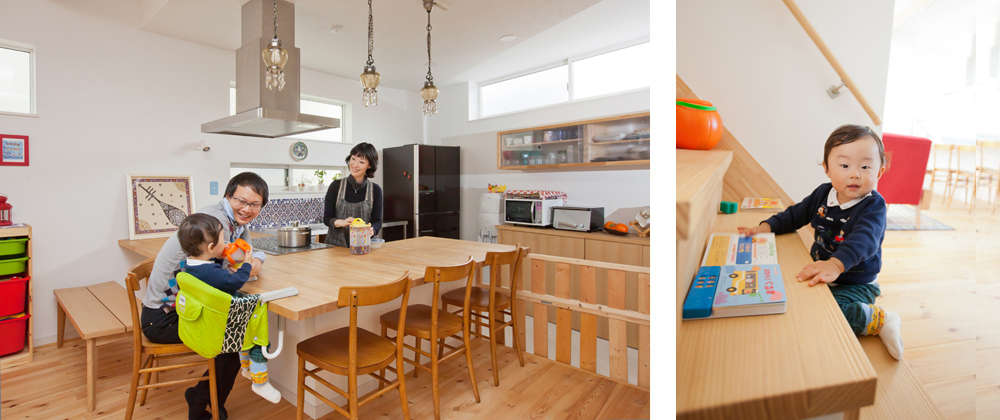 どこにいても家族が顔を合わせるように。家の中は回廊のように設計されています。