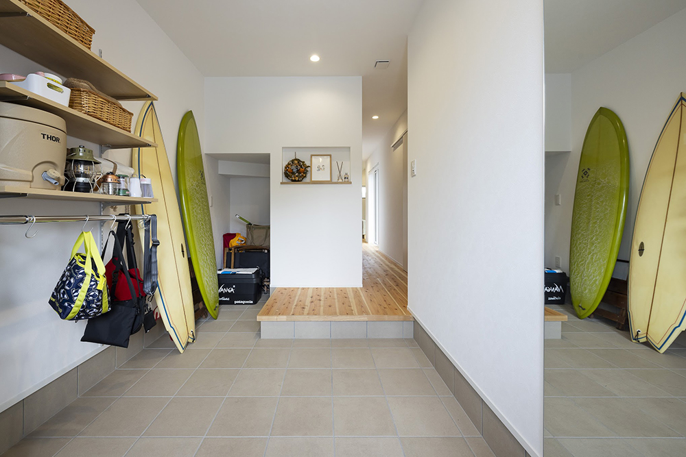 玄関土間を広く取り、アウトドア用品やスポーツアイテムをたっぷり収納できるように