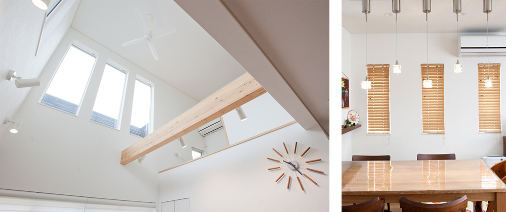 白を基調としたシンプルな内装にするため、天井と壁の境目も底目地に