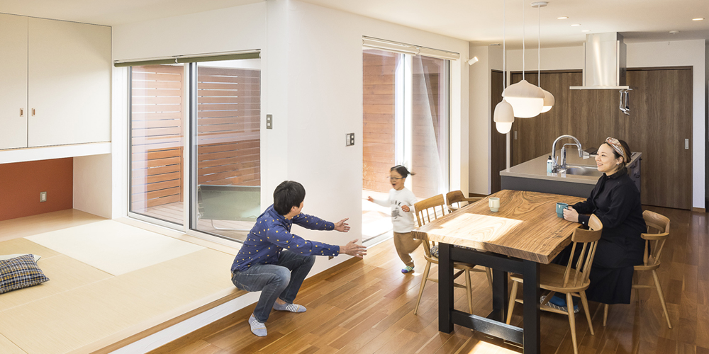 LDKと一体の中庭が最高!家の内も外も楽しめます